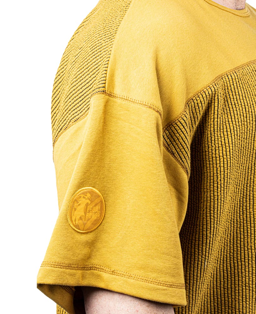 Rag Top LpLimits Bostomix, olağanüstü malzeme kombinasyonu ve belirgin kontrast detaylarıyla öne çıkıyor. Esnek Ottomix kumaştan üretilen gövde, omuz kısmında sağlam Boston dokuma yapısıyla tamamlanıyor – konfor ve görsel gücü bir araya getiren çift dokulu bir tasarım.